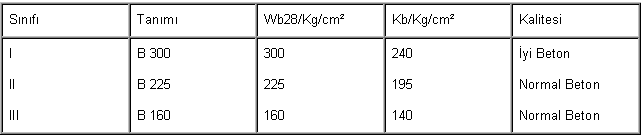 yerlerde beton B 160, B 225, B 300